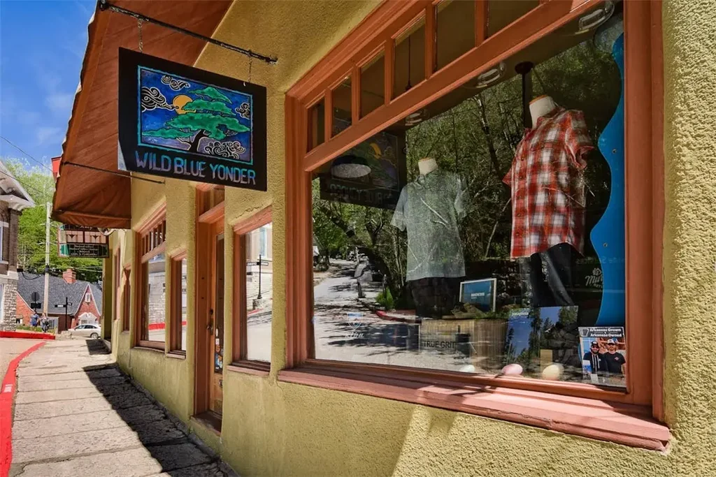Prime retail location on busy Spring Street in Eureka Springs’ downtown shopping and nightlife district. The space has as a long history as a high-end outdoor apparel shop and includes storage and dressing areas as well as restroom. The 800 square foot space is part of a condominium building. With a high foot and vehicle traffic count and large display windows, this welcoming space is only limited by your imagination. Entrepreneurs, bring your great idea and make it a reality in the heart of Eureka Springs!