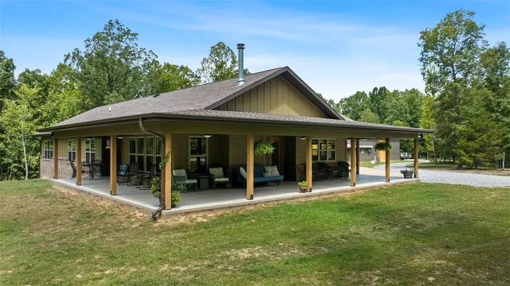 Beautiful wooded property situated on over 19 acres that boast a single-story farmhouse style home built towards the back of the property for privacy. Two master suites with custom bathroom showers and a 1474 sq ft wraparound porch with fans. There are views from every room in the house including the home office. It comes with a 1920 sq ft insulated workshop with three insulated overhead doors and an additional 960 sq ft of attached covered storage along with a shop office. There are two acres cross-fenced for animals and a 20' x 30' steel truss tractor shed. Built with energy efficiency in mind the home includes Argon filled low-e insulated windows, insulated garage, R38 ceiling insulation, and an EPA certified wood stove. The home has buried fiber and fixed wireless internet connections. There are several other spots on site for building and a pond at the entrance to the property. This property is a must see. Ask for the amenities sheet attached in the MLS. Located 20 minutes from Walmart Home Office.