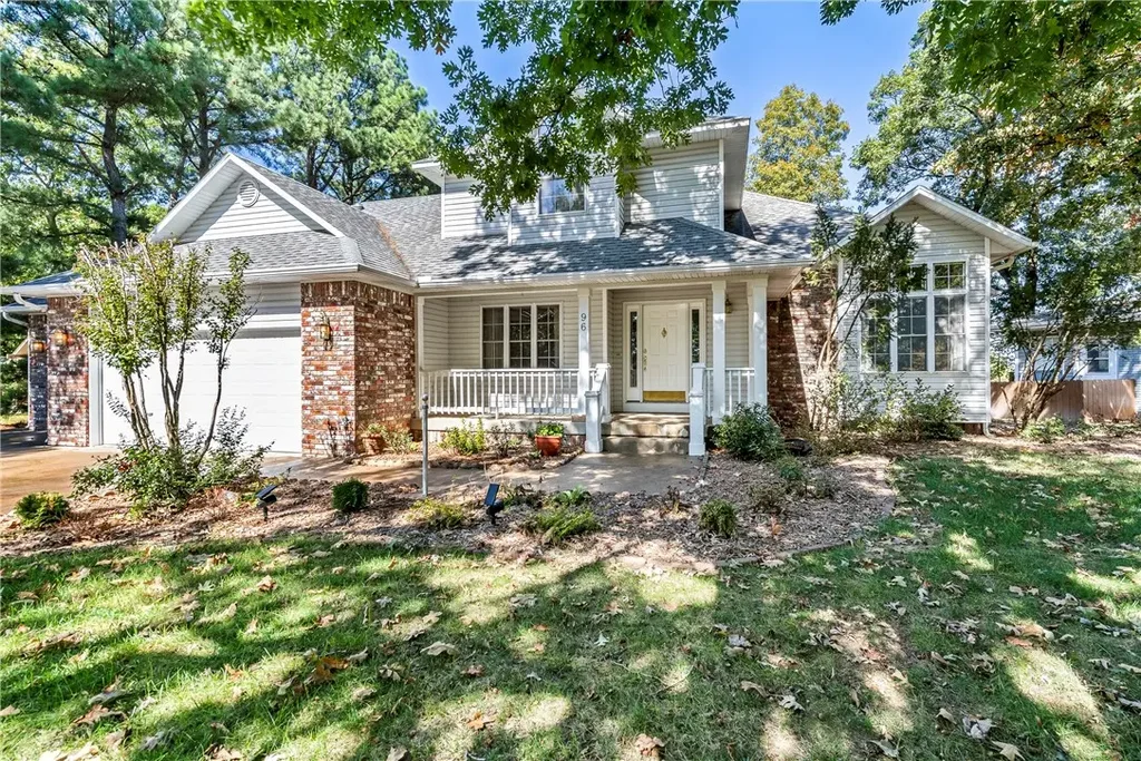 Turn-Key VRBO Overlooking the Golf Course! You'll enjoy this beautiful home on the 18-hole golf course operating as Holiday Island Fairway Estate. The 3BR//2.5 BA home has great curb appeal on a corner lot with large oaks and a covered front porch. The front entry room is spacious and could be used for dining or card games. The adjoining living room has a gas-log fireplace and a window seat with a stained-glass window. The kitchen offers abundant storage and counter space, double electric ovens, and a gas Thermador cooktop. A master suite on the main floor has a large walk-in closet. There are two large bedrooms and a full bathroom on the second floor, and a hidden room behind a hallway bookcase. Sellers have installed new CH&A and added a mini split in the sunroom. The sunroom and deck overlook the fairway, and there's a secluded hot tub and a fire pit and patio. There's always plenty to do, being an easy drive to downtown Eureka Springs, Roaring River State Park, Dogwood Canyon Nature Park and Branson.