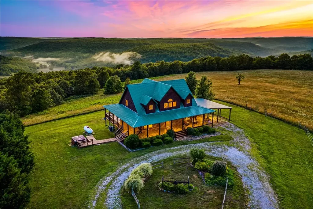 Here's your chance to own this rare Newton County property with 94+/- acres having a nice mix of pasture, hardwoods, a spring and spectacular mountain sunset views from your custom-built Log Cabin, AND one of the renowned "Mountain Springs" natural springs supplies fresh water to the home. This unique property offers 3 bedrooms, an office, 2.5 baths, an open floor plan highlighted by vaulted ceilings and a stunning catwalk that separates the upstairs bedrooms. Enjoy year-round outdoor living on the wraparound covered porch, where you can take in spectacular long-distance mountain sunset views or relax in the hot tub under the stars. Equestrian enthusiasts will appreciate the horse barn and pasture with fabulous trails to ride nearby. Bring your convertible and ride the scenic mountain highways because the drive is asphalt, leading from a state highway. There's a 24 X 30 carport attached to the home. Selling furnished and with appliances and hot tub conveying!
