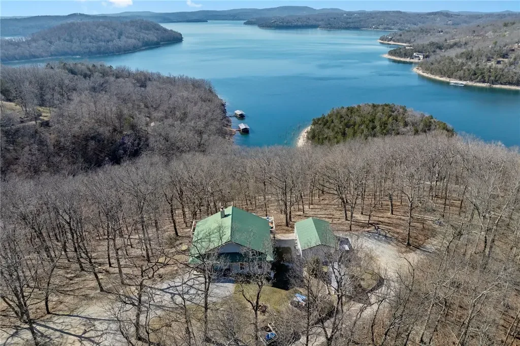 Lakefront property w/ private cove & boat dock on 14+ acres on Beaver Lake. Welcome to lake life at its best, offering equal parts fun & relaxation + convenience & privacy; a combo that makes this one a rare find! Enjoy stunning views of Point 5, combined with the ease & convenience of having your own 2-slip boat dock. Built in 2004, the 3,240 sq. ft., 3-bed, 3-bath home offers spacious, open-concept living w/ a finished basement, perfect for entertaining or guests accommodations, featuring 10” reinforced concrete walls & 10’ ceilings. An expansive deck provides the perfect setting for gorgeous sunrises & sunsets over the lake, while the front patio provides a peaceful spot to simply enjoy being surrounded by nature. Property includes 2 metal buildings (30x40 and 24x33 - one w/drive thru garage doors) for boats, RVs, or workshops + a 10x20 greenhouse for year-round gardening. Durable hardy board siding ensures longevity. Attic area prep’d & ready to be converted into a loft if desired.