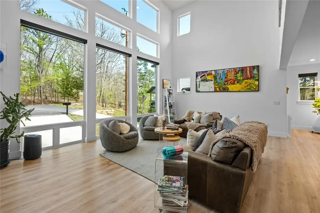Where gorgeous modern comfort meets natural beauty. Professionally crafted in 2022 on over a half an acre sewered lot. This home features 3BR/3.5BA + office. Main level includes: floor to ceiling windows bringing in the natural light, eat in kitchen, Frigidaire Gallery appliances & quartz countertops. The main level has a bedroom, full bath, utility, double sided FP in living room/back balcony. Sliding french doors off DR open to covered deck with composite decking that help you take in the tranquil setting of this home & extend the entertaining. Upstairs features: main bedroom with walk-in closet & en-suite bathroom featuring walk-in shower, water closet, and double vanity. Second guest bedroom is also upstairs with full bathroom access from hall. Basement features garage, storage lockers, built in desk & plenty of storage along with added office. Metal Cowboy pool conveys, near Back 40 Biking Trails, & wood/chain link fenced in yard. Come see the high end custom finishes mixed with beautiful designer touches.