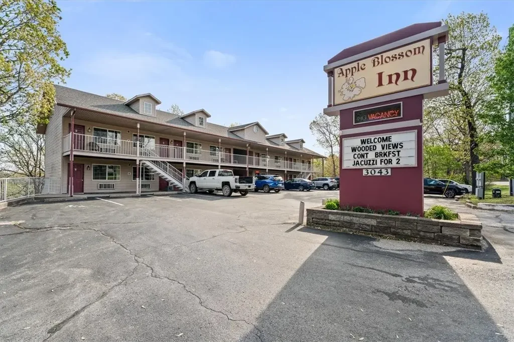 Welcome to the Apple Blossom Inn, a charming property nestled in the heart of the Ozarks, offering stunning mountain views and an ideal location just 2.2 miles from Downtown Eureka Springs. This well-maintained inn features 29 guest rooms spread across four floors, including 14 double queen rooms (two of which are connecting), 2 single queen rooms with jacuzzis, 8 king rooms, 4 king rooms with jacuzzis, and 1 king handicap-accessible room. Guests will appreciate the scenic views from the back balcony, as well as convenient amenities like free parking and direct access to the Yellow Trolley Stop #50, located right out front. The property also includes a one-bedroom Manager's Quarters with a full kitchen, perfect for employee housing or as an additional rental income opportunity. Sitting on +/- 2 acres with potential for expansion, The Apple Blossom Inn is easily accessible from Hwy 62, making it an excellent investment opportunity in the thriving tourism hub of Eureka Springs!