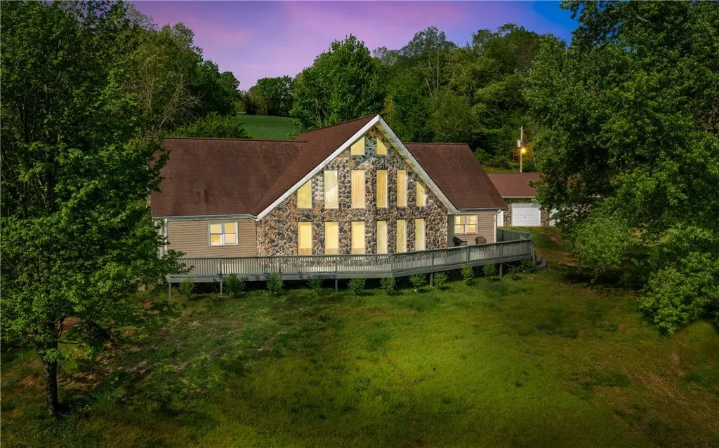 Dreaming of a secluded property at the end of a quiet road-perfect for hunting, fishing, raising animals, and harvesting from your own orchard? This 5,000 sq ft home on 80 acres has it all! Located within a short 30-minute commute to either Bentonville, AR or Joplin, MO, this custom designed home boasts 5 bedrooms, 3 finished bathrooms, plus a 4th bathroom in the 1,200 sq ft unfinished walkout basement. The main floor features hardwood oak flooring, a massive primary bedroom, large kitchen with custom cabinets and under cabinet lighting, granite countertops, walk-in pantry, and a spacious laundry area with extra freezers. Upstairs is fully carpeted offering cathedral ceilings, bonus space, two more bedrooms, and a third bath. Explore fenced trails, three ponds, fruit tree orchard, blueberry bushes, and a rainwater collection system. Loaded with extras such as a hot tub, a 500sqft deck, and the option of working remotely with fiber internet and Wireless Access Points on all floors. Properties like this are rare!