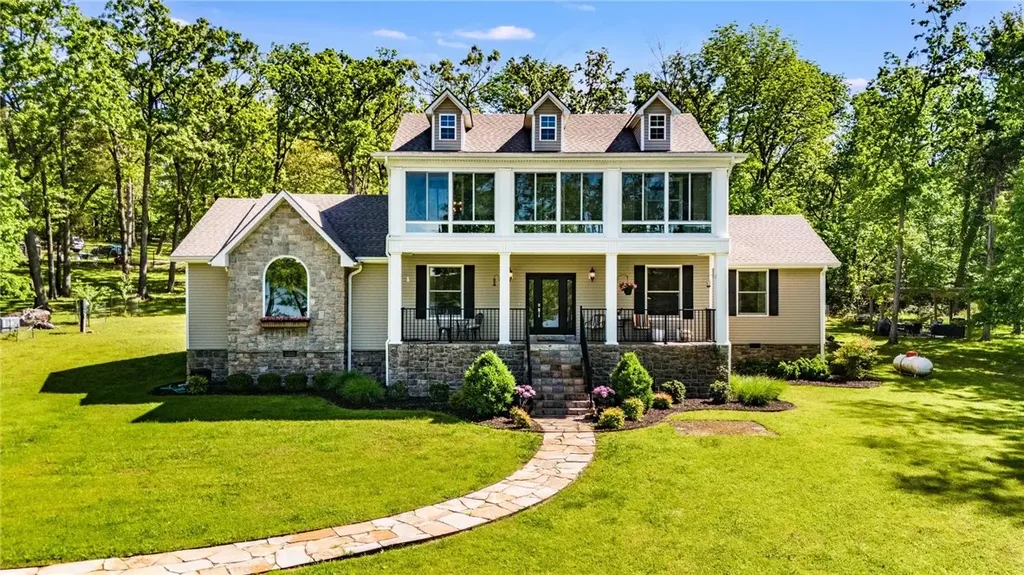 Tucked along the sparkling shores of Beaver Lake, this stately colonial-style retreat sits on 4.09 serene acres just 30 minutes from Downtown Rogers. With 271 feet of core frontage, a private walking path leads to the beach where lake views stretch endlessly and a boat slip with lift and swim deck awaits. The spacious 3,287 sq ft home invites connection and comfort with 4 bedrooms, 2 full and 2 half baths, a bonus room, and a sunroom designed to soak in every season. Recent updates include new roofs, luxury vinyl flooring, fresh paint, a whole house surge protector, and a new dishwasher—so you can relax from day one. Beyond the home, a 30x60 heated workshop with its own septic, bath, W/D, kitchenette, and storm shelter offers endless potential: guest quarters, RV haven, studio, or business base. Plus, an underground pet fence and level lot mean ease for everyday living. Whether you're chasing lake life dreams or seeking a forever getaway—this is where it begins.