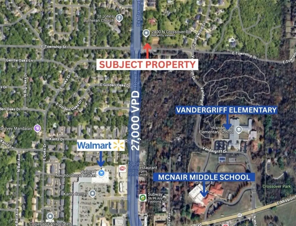 Corner lot with 4 way traffic light. This 1.42 acre lot that is already zoned neighborhood services which is ideal for multiple compatible business. 27,000 cars per day insures maxim exposure. Home on lot is considered of no value but comes with the sale as is where is.