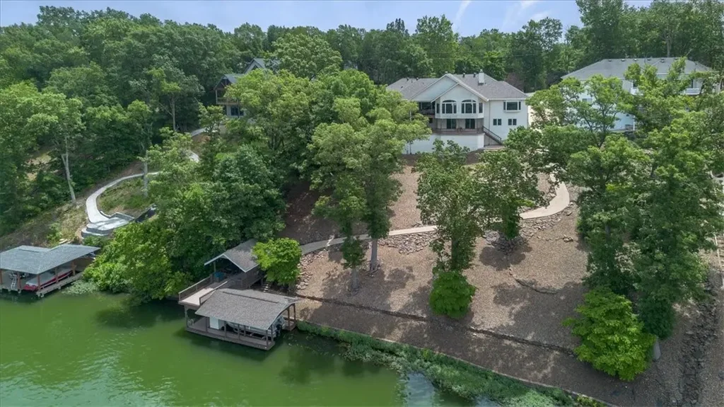 Private lakefront oasis with 131' of shoreline. This home offers stunning sunset views, abundant space, & direct access to some of the best fishing. Step into an expansive kitchen with an oversized island, ideal for gatherings. The open-concept flows seamlessly into the living room & 350 sqft sunroom—perfect for coffee/relaxing with a book. A dedicated office provides a quiet retreat. Primary suite features lake views, walk-in shower, oversized whirlpool tub, & his-and-hers walk-in closets for top convenience. Downstairs, has 2 bedrooms, 2 bathrooms, kitchenette, & 2nd living area—complete with a pool table that conveys. Plus, 750+ sqft of unfinished space for storage/future expansion. 2 composite decks overlooking the lake. A fenced dog yard off the side of the home. Your private dock features 900 sqft of entertaining space, shuffleboard/dining table combo that conveys. Lower deck includes a covered boat dock with lift. New roof installed April 2025. Three-car oversized garage. Boat & side-by-side negotiable