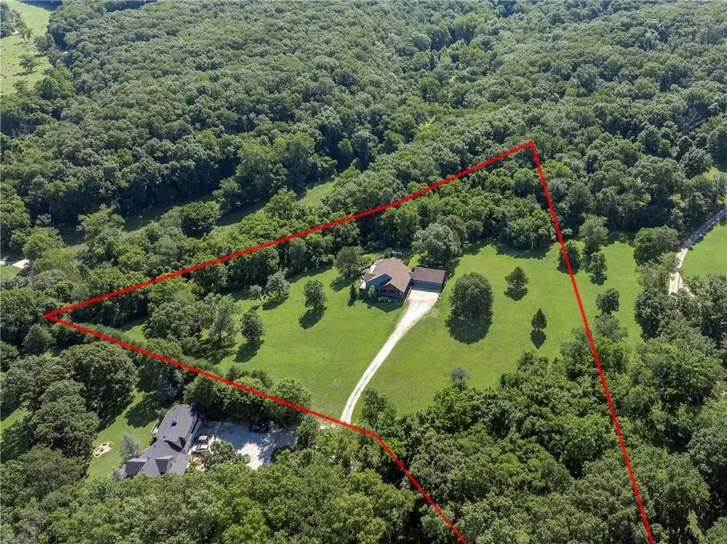 Rare chance to own 5 private, wooded acres just minutes from Bentonville! This spacious 3534 SF home is move-in ready with an inviting in-ground pool, large scenic deck, and covered front porch perfect for entertaining or relaxing in nature. Modern kitchen features quartz counters, gas range, custom cabinetry, and island seating. Vaulted living area with panoramic views and abundant light. Luxurious primary suite with private balcony, walk-in closet, spa-like bath with double vanities, tiled shower, and sauna. Finished walk-out basement offers a large family room, full bar with seating, game area, and extra bedrooms for guests or office. Landscaped yard with mature trees ensures privacy. Oversized laundry room with built-ins, attached 3-car garage, and ample storage throughout. Ideal for buyers wanting acreage, space, and seclusion without giving up quick access to Bentonville schools, shopping, trails, and all Northwest Arkansas amenities.
