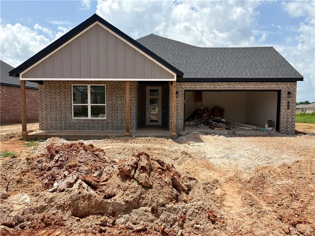 Pea Ridge welcomes you to its rapidly growing community. The Yorktown subdivision places you at the heart of it all, offering close proximity to schools, parks, and beautiful scenic views.This lot showcases the Cardinal Plan, where you're welcomed by LVP flooring and bright, airy touches that bring the home to life. All bedrooms are conveniently located on one side of the house, with two bedrooms and a bathroom at the front, while the primary suite is tucked at the back, next to the laundry room and two extra storage spaces. The kitchen, living, and dining areas flow seamlessly together, with the kitchen offering ample storage, including a walk-in shelved pantry. Enjoy outdoor living with both covered front and back patios