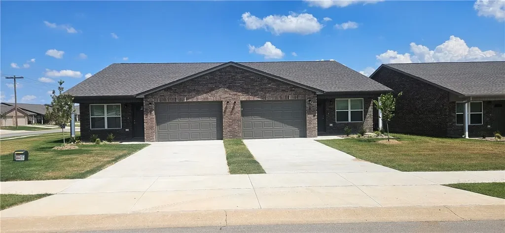 Brand new duplexes in Bentonville close to NWA Regional Airport for lease. Home features 3 bedrooms, 2 bathrooms, 2 car garage, LVP throughout home, granite countertops, ceiling fans, open floorplan, covered back patio for grilling/entertaining, fenced in yard and all appliances included. 1 month free rent with all 1 year leases signed by October 1, 2025.