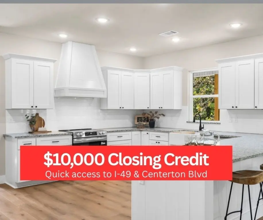 $10,000 Closing Credit! There’s room for the whole family in this new construction 4-bed, 4-bath home on 1 acre, just 20 minutes from Downtown Bentonville. This modern country retreat is designed for comfort and connection, featuring 2 living areas and an open-concept floor plan. The kitchen shines with granite countertops, white shaker cabinets, stainless steel appliances, and wooded views. A large walk-in pantry keeps everything organized, and the bright dining area is ideal for family gatherings. The main-level primary suite offers a peaceful escape with a custom-tiled shower, soaking tub, and walk-in closet. A dedicated home office provides space for work or study, while the oversized 3-car tandem garage and walk-in attic offer excellent storage. Upstairs, the flexible second living area is perfect for a media room, playroom, or teen hangout. Enjoy private wooded views from the covered deck. Located minutes from I-49 and E. Centerton Blvd., this home blends country living with quick access to all NWA offers.