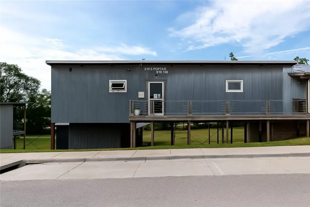 The space is located across from The Railyard and adjacent to the Razorback Greenway bike trail, offering excellent visibility and accessibility. The current build-out could be used for a yoga and spin studio, retail space, office space, exhibit area and has two large glass garage doors, a modern black ceiling with upgraded lighting, and two restrooms. The open floorplan allows for flexible uses, along with the Zoning of T5.2, this location supports a wide range of commercial uses. Showings will be scheduled once the current tenant has vacated.