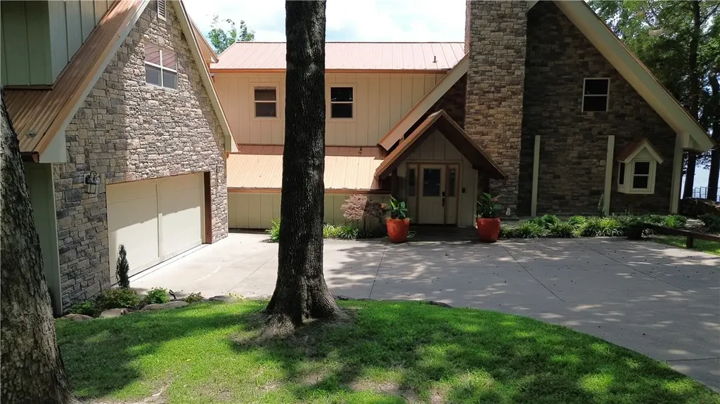 ASTOUNDING PANORAMIC VIEW OF GRAND LAKE! This totally updated south Grand Lake home has an open living and kitchen that has views of the spillways. A primary suite upstairs and downstairs in this 4 bedroom 3.5 bath. It comes complete with a hot tub, theater, plus an outdoor kitchen for gatherings. Has a gated entrance to the home with security system in place. Just steps to 85' of dockable water. The perfect lake getaway!
