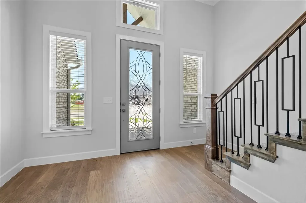 The Augusta Plan in Centerton! Stunning new construction with an open floor plan featuring 4 bedrooms and 3.5 bathrooms. Enjoy the large covered porch with outdoor fireplace, perfect for entertaining. The primary suite offers a tiled shower and spacious wrap-around closet. Upstairs includes 2 bedrooms, 1.5 baths, and a bonus room. Additional features: 3-car garage, gutters, blinds, and fenced yard. The house is still under construction and pictures are not of actual house but similar plan and finish. Taxes are based on land only. Seller is offering $7500 towards closing costs and preferred lender incentives available.