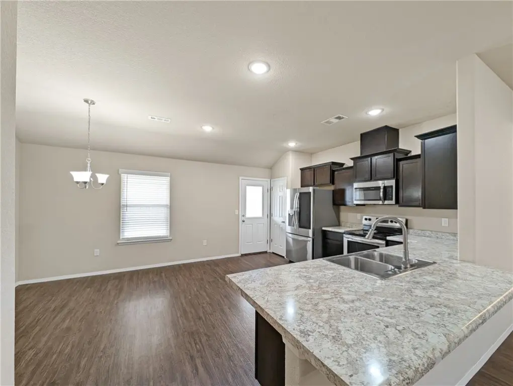 This charming single-story home offers four bedrooms and two bathrooms, along with a two-car garage and an attractive split floor plan. Situated in a growing area near XNA Airport and the Walmart Distribution Center, it belongs to the well-regarded Bentonville School District. The home is equipped with solar panels for energy efficiency and includes a covered patio that is perfect for outdoor relaxation. It also features numerous thoughtful upgrades throughout, highlighted by three elegant archways and beautiful plank wood flooring. The spacious master suite includes an oversized walk-in closet, and the refrigerator, washer, and dryer are included. Credit & Background check required.