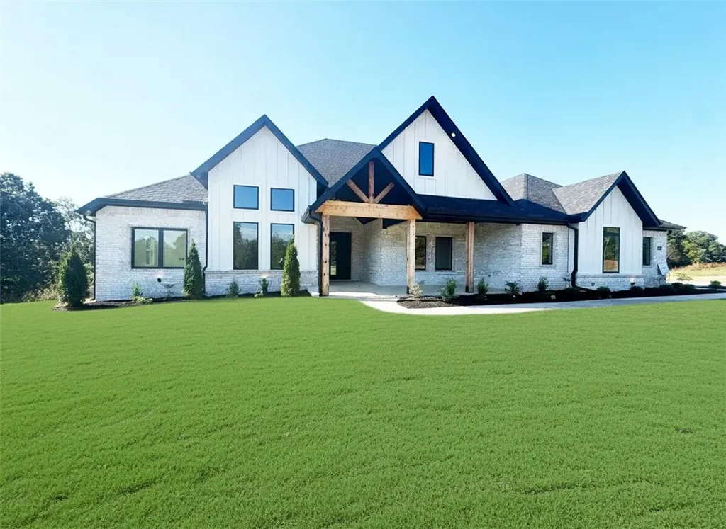 Located in Serenity Ridge, NWA's newest gated luxury subdivision, this beautifully designed 2-story home sits on a spacious 1-acre lot and offers the perfect blend of luxury and comfort. Featuring 5 bedrooms, 4 bathrooms, and a dedicated office, this home is ideal for both entertaining and everyday living. The kitchen boasts quartz countertops, custom cabinetry, and upgraded stainless steel appliances. Enjoy year-round outdoor living on the covered back patio with a brick fireplace and gas logs. Additional features include a welcoming front porch and thoughtfully selected finishes throughout. Taxes based on land only. Builder is offering $15,000 in concessions. Estimated completion date is mid November.